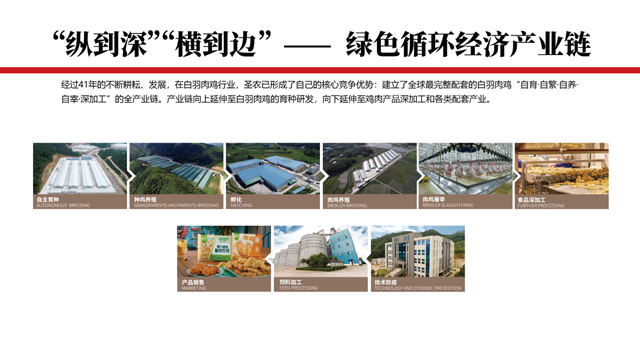未来,350vip葡亰集团坚持以白羽肉鸡全产业链为中心,不断拓展产业外延,整体经营格局涵盖农牧和食品餐饮、物流、投资、配套产业,完善农业养殖 4.0 体系建设,全力打造 10 亿羽肉鸡产业集群。同时着眼可持续发展战略的能源环保领域,致力于打造享誉世界的食品产业集群。